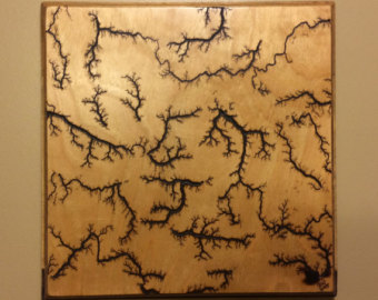 | Made by applying a conductive solution to the surface of the wood, then applying an extremely high voltage, Lichtenberg figures are as dangerous to create as they are beautiful. |