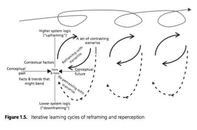 According to Strategic Reframing: “Scenario planning as we see it in the OSPA is ideally not a linear ‘project’ with a beginning, middle, and end, nor (ideally) a one-off intervention, but is instead an iterative process that enables and sustains organizational learning.”