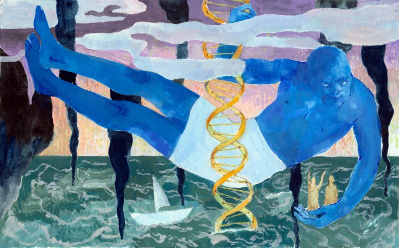 On Obatálá’s golden chain, poised in the grand between, hangs not just a riveting account of beginnings-that-are-not-originary (or “middles”), but a figure of shocking intersections or transversal happenings—a figure that is particularly alive and much needed right now. This chain—like Obatálá’s golden chain—disturbs everything, remakes everything … rethinks everything. Its helixes weave together new practices that open up new considerations about how to ask questions related to identity and racial justice. I speak of deoxyribonucleic acid, or DNA.