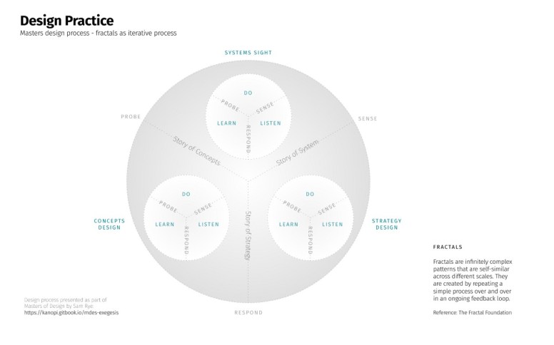 In formulating my final written part of my Masters, I explored how to share the non-linear nature of my design practice. What I ended up sharing was this simple visual: