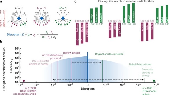 One of the most universal trends in science and technology today is the growth of large teams in all areas, as solitary researchers and small teams diminish in prevalence1,2,3. Increases in team size have been attributed to the specialization of scientific activities3, improvements in communication technology4,5, or the complexity of modern problems that require interdisciplinary solutions6,7,8. This shift in team size raises the question of whether and how the character of the science and technology produced by large teams differs from that of small teams. Here we analyse more than 65 million papers, patents and software products that span the period 1954–2014, and demonstrate that across this period smaller teams have tended to disrupt science and technology with new ideas and opportunities, whereas larger teams have tended to develop existing ones. Work from larger teams builds on more-recent and popular developments, and attention to their work comes immediately. By contrast…