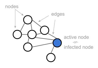 This activation or infection is what will be diffusing across the network. It spreads from node to node according to rules we’ll develop below.
