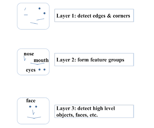 It is believed that neurons are arranged in a hierarchical fashion (however, many credible alternatives with experimental support are proposed by the scientists) and each layer has its own role and responsibility. To detect a face, the brain could be relying on the entire network and not on a single layer.