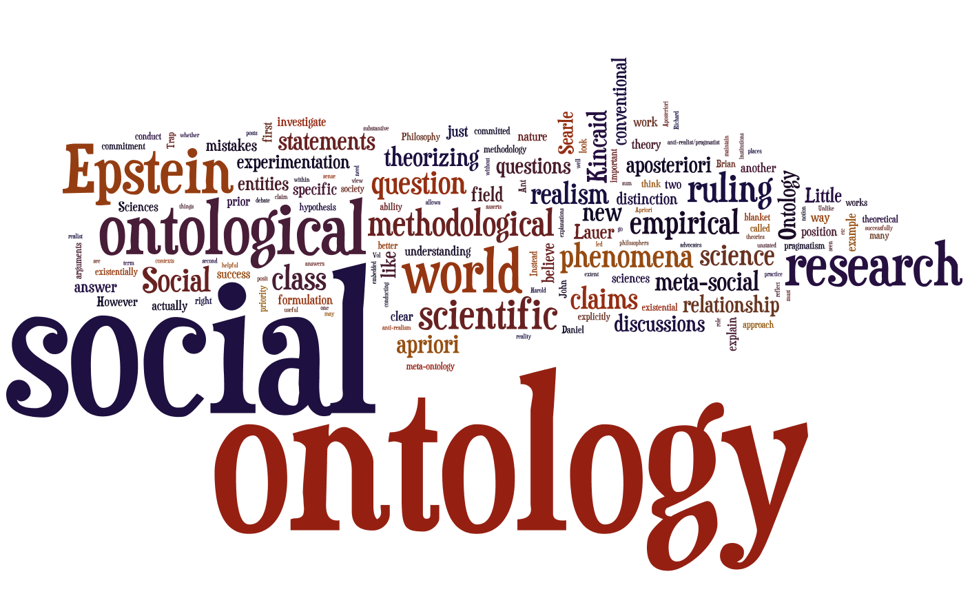 Social ontology is the study of the properties of the social world. Conventional claims about social ontology proceed by asking and answering questions such as, “what is the existential status of social entities (e.g. institutions, governments, etc.)?”, “can institutions exert causal influence?”, “what is the causal relationship between micro, meso, and macro-level social entities?”, etc. Daniel Little is one of the many philosophers and sociologists who has written extensively on the topic of social ontology (see discussions here, here, and here). The types of arguments and discussions found in those blog posts represent conventional social ontology discussions—conventional in the sense that the content of the posts constitute the sort of commonly agreed-upon purview of social ontology discussions.