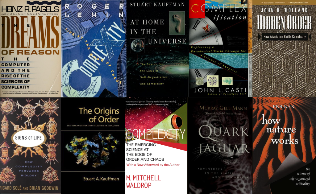 Here is a list of complexity science books in a popular science style from when the hype was the biggest—from 1988 and a decade further*—and some very brief comments. Several of them are available at archive.org, as linked below. I’m pretty sure I forgot several. If so, I’ll add them later.