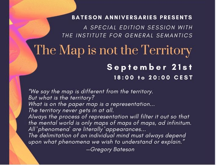 We are excited to invite you to the Bateson Anniversaries special two-hour session with The Institute for General Semantics titled—The Map is not the Territory—a term famously coined by Alfred Korzybski. We share the following essay before our session, taken from the text of Gregory Bateson’s talk at the Alfred Korzybski Memorial Lecture in 1970—Form, Substance and Difference.