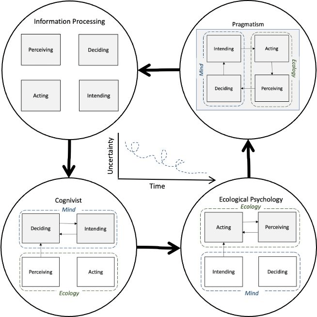 Four approaches to parsing a cognitive system. Classically, the information processing approach has parsed the cognitive system into a series of independent stages; others have focused on cognition as a computational system (computer, neural net) but have tended to diminish the components involved in perception and action; ecological psychologists have reacted by emphasizing perception and action – sometimes to the exclusion of computations. However…