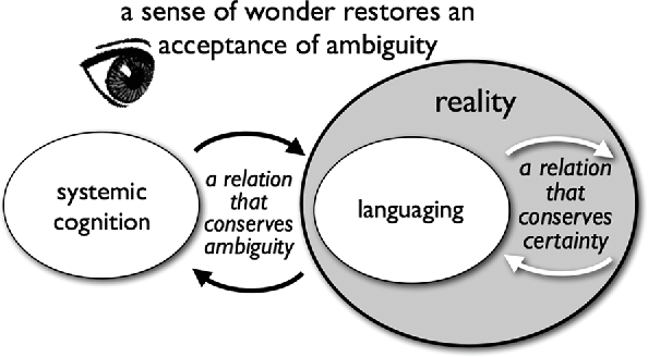 For us humans ambiguity is, I think, a necessary concomitant to complexity. Since we are living systems living systemically, in a complex systemic network of relations, complexity is a given. Thus ambiguity is also a given, though at times we would like to dispose of it or ignore it. In this paper I will approach the topic of ambiguity via some common metaphors, a parable, and through my understanding of biology, language, culture, cybernetics and systems. I began working with simulation models in the late 1960s, using punch cards and one-day batch processing at the University of California Berkeley campus computer center. As the complexity of our computing systems grew, I like many of my colleagues, became enchanted with this new possibility of dealing with complexity. Simulation models enabled us to consider many interrelated variables and to expand our time horizon through projection of the consequences of multiple causal dynamics, that is, we could build systems. Of course, that is exactly what we did, we built systems that represented our understanding, even though we may have thought of them as mirrors of the systems we were distinguishing as such. Like others, I eventually became disenchanted with what I came to regard as a selected concatenation of linear and quasi-linear causal relations. As I continued to discuss systems and eventually teach systems courses, I became acquainted with the work of Donella Meadows; and found myself deeply respectful of her insights and clarity. In particular I liked her paper “Dancing with Systems”2 where she claims “We can’t control systems or figure them out. But we can dance with them!” (Meadows, 2008, p. 170).3 I like the notion of dancing with as it implies both an ongoing coordination with another, or a group, and a coherence with something