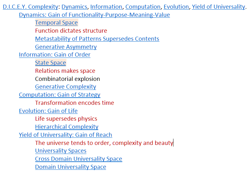 Complexity is a field loaded with unnecessary complex concepts and lack of actionable insights. DICEY offers penetrating insights, fully actionable, you immediately see through the problems. Ex: You need only to master the left that can reproduce the right. Left vs right