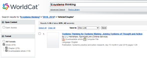 Keeping up is a professional responsibility and intellectual challenge. The size of this task can be seen from a naïve search for “Systems Thinking” in the title identifies ‘over 10000’ books on Amazon whilst Worldcat identifies 879 new articles and 316 new books in 2018 alone. Around 15,000 pages of articles and 100,000 book pages to read year on year!